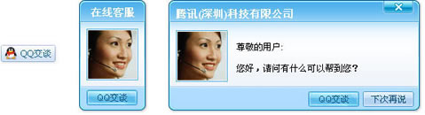 方法1: 在您企业的网站,设置 “企业QQ在线状态”代码后,客户就能与您的员工进行会话 企业QQ在线状态:您的客户打开您的企业网站时将看到的是您的企业QQ图标,客户点击后,可直接您的员工进行会话。 “企业QQ在线状态”样式列举: